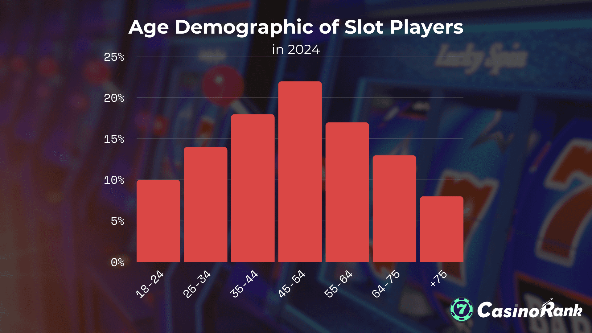 Compreender o perfil demográfico dos jogadores de slots com jackpot oferece informações valiosas sobre a dinâmica do mercado e as preferências dos jogadores. De acordo com o CasinoListing, a faixa etária dos jogadores de slots é a seguinte: